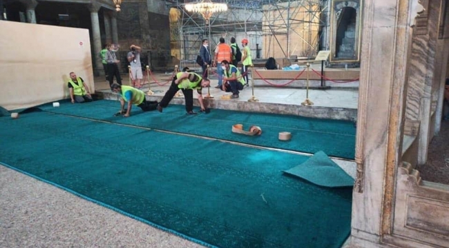 Ayasofya Camii Nin Ibadete Acilmasina Sayili Gunler Kala Halilari Serilmeye Baslandi