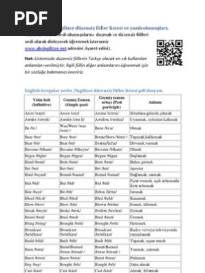Ingilizce Duzensiz Fiiller Listesi Pdf